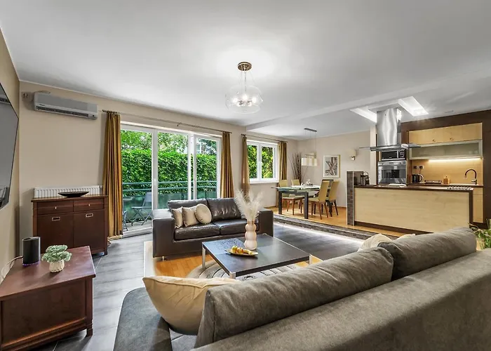 Goście 90M2 Prestige Suite - Parking & Jacuzzi & Aircon By Rentujemy Warszawa o powierzchni 90 m² mogą szybko dostać się do Pomnika Fryderyka Chopina, który leży w około 4 km. Ten apartament oferuje dostęp do salonu spa, a także jacuzzi.